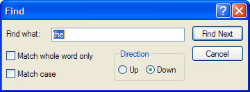 Direction Click the radio button corresponding to the direction to search starting from the insertion point in the document. Click Up to search from the insertion point to the top. Click Down to search from the insertion point to the bottom.