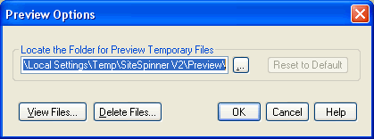 Use the Preview Options dialog box to manage your SiteSpinner™ temporary preview files.